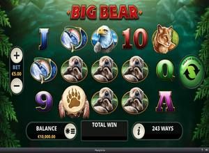 Big Bear es una tragamonedas de Playtech con 5 carretes y 243 formas de ganar. Se puede jugar desde 10 hasta 500 monedas por giro en todos los dispositivos compatibles, como teléfonos inteligentes y tabletas.